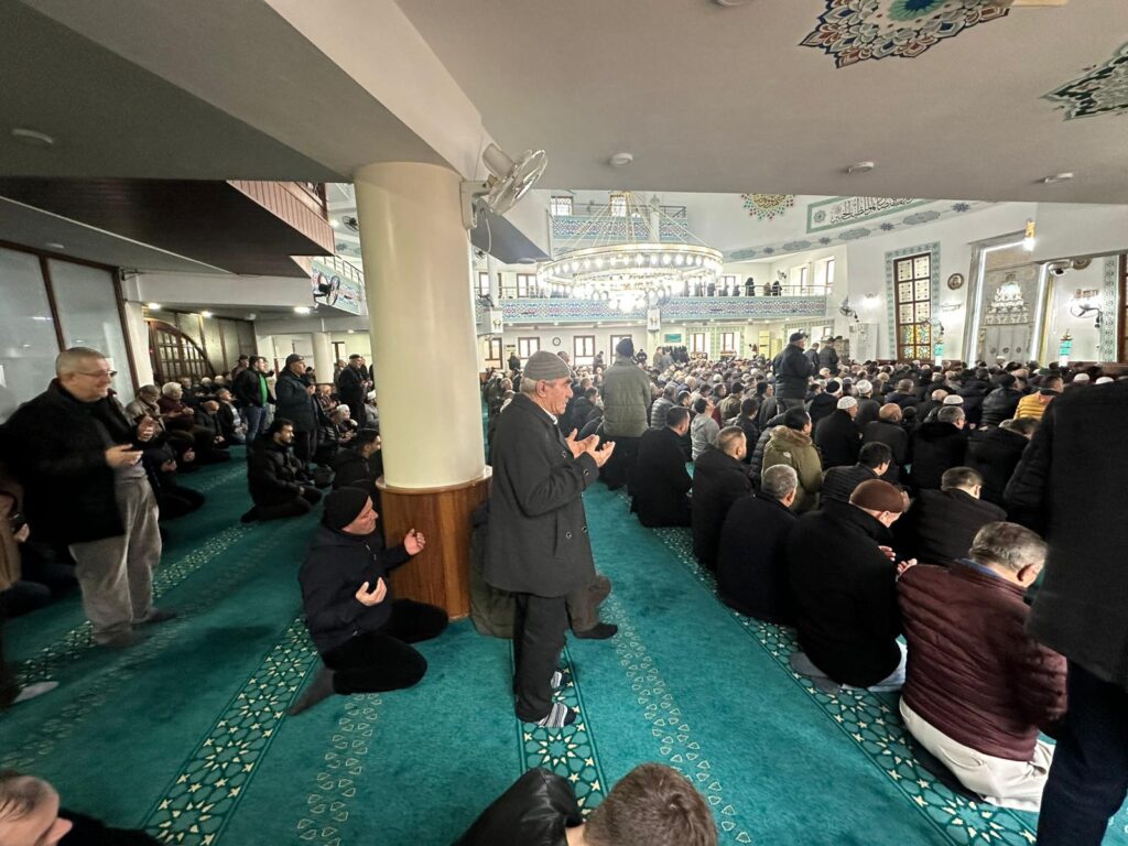 Aziz şehitlerimizin ruhları için 04 Ocak Pazar günü, öğle namazı öncesinde Yalova Merkez Camii’nde düzenlenen programda cami adeta dolup taştı. Yüzlerce vatandaşın katıldığı mevlitte Yalovalılar, vatan uğruna can veren kahraman polislerimize olan vefa ve minnet duygularını dualarla ifade etti. Cami içi ve avluda oluşan yoğunluk, milletin şehitlerine sahip çıkma iradesini güçlü biçimde ortaya koyarken, okunan her ayet ve edilen her dua şehitlerimizin aziz hatırasına ithaf edildi.